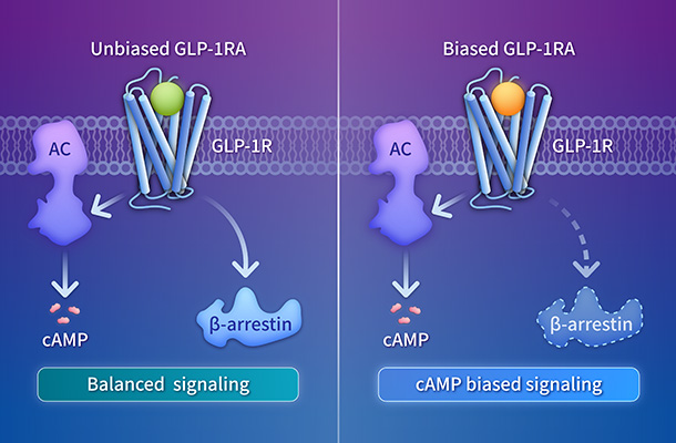 BiasVantage? 偏向型激動劑發(fā)現(xiàn)平臺利用基于結(jié)構(gòu)的合理設計及全面的信號傳導分析,打造療效增強、脫敏程度降低的精準療法。該平臺開發(fā)信號選擇性配體,通過降低脫敏程度延長受體活性,從而比非偏向型方法獲得更佳的治療效果。
