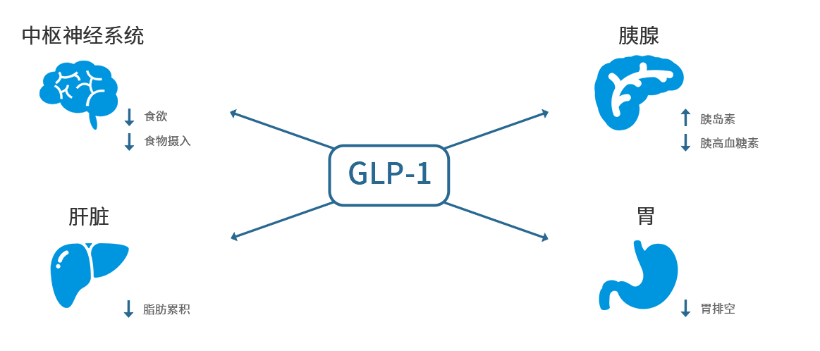 胰高血糖素樣肽-1(GLP-1)在餐后自然釋放,該肽作用于消化道、肝臟、胰腺和中樞神經(jīng)系統(tǒng)以維持生理健康。